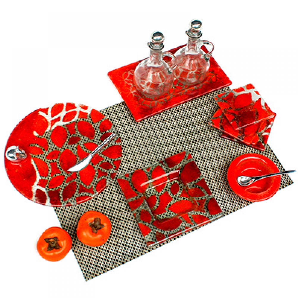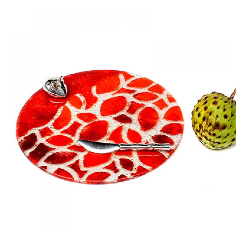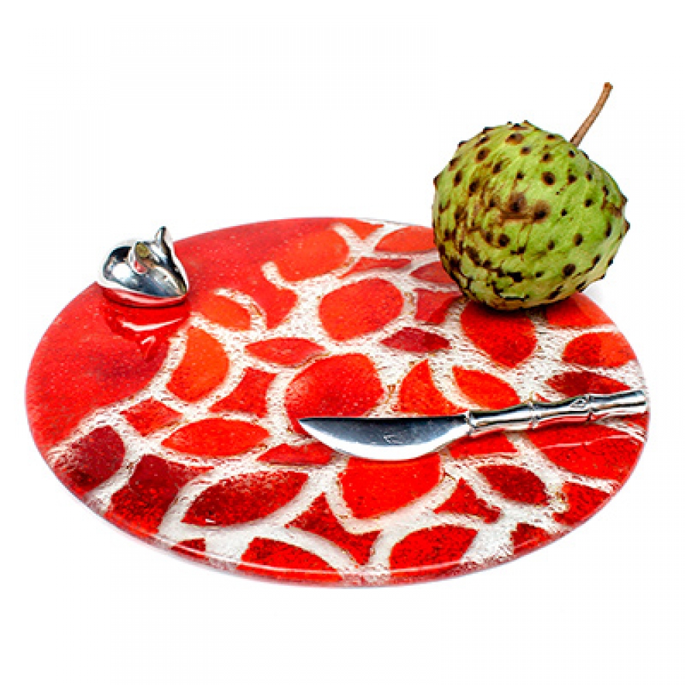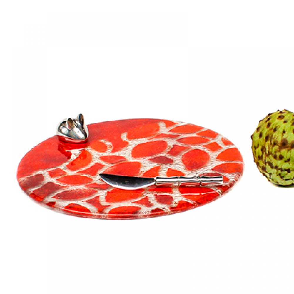 Tabla para servir hojas rojas, incluye raton y cuchillo para untar.