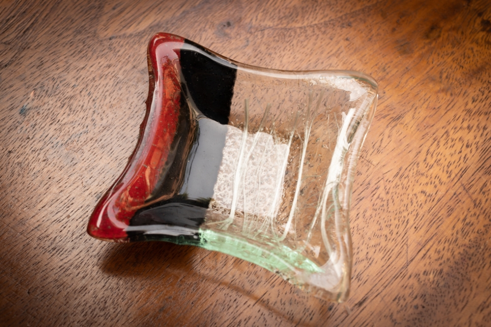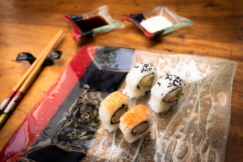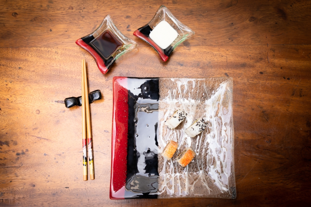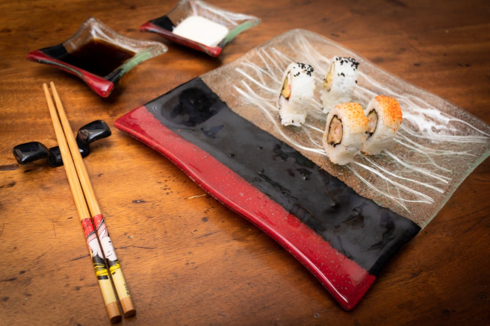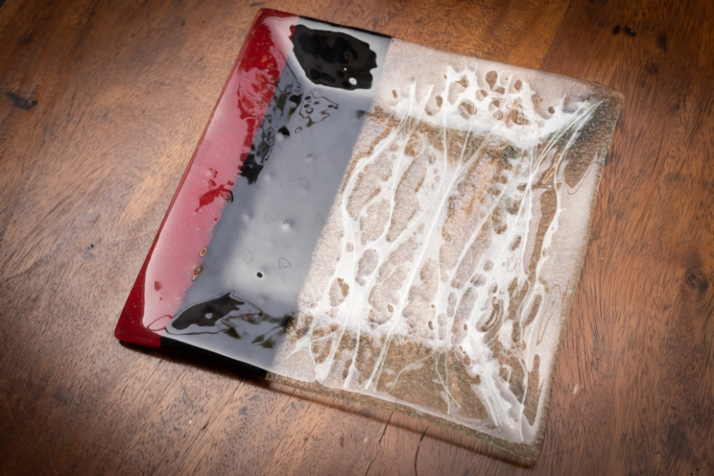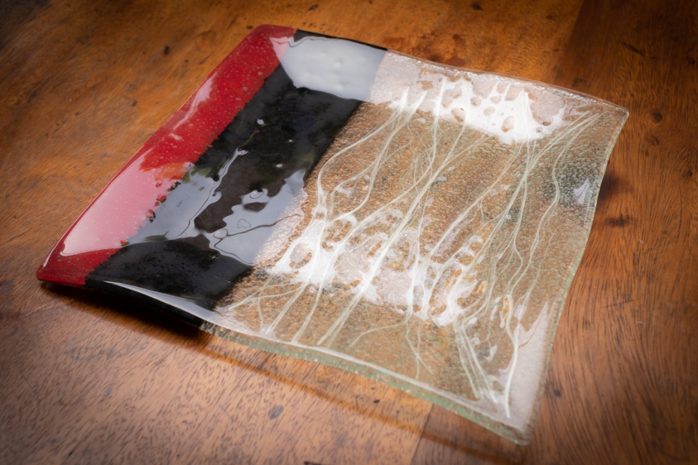 Plato Aka to Kura, diseñado y trabajado con pigmentos especiales de color rojo, negro y blanco.