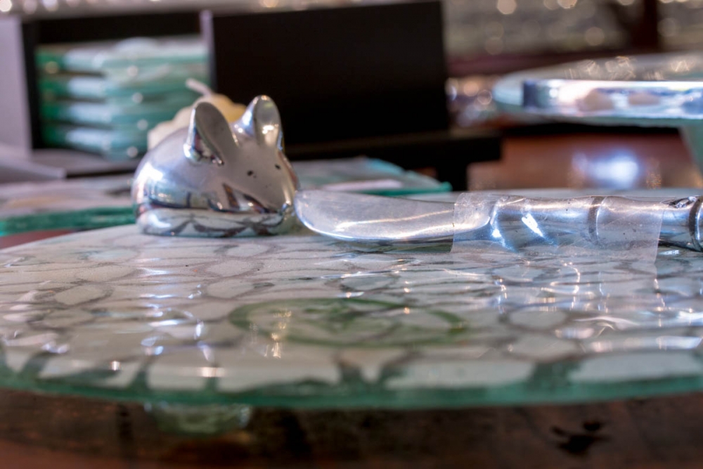 1 Quesera redonda de 25 cms. de diámetro aprox. Con ratón y cuchillo de peltre.